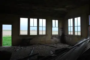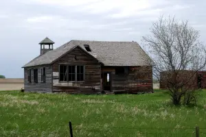 To get there, follow highway 12. It is about 7 miles west of Bowman and about 6 miles east of Rhame. It is identified by a grain elevator about a 1/4 mile west of the town. Griffin sits about 1/4 mile north of the main road on the opposite side of a rail road. The road that goes over the tracks has been taken out, so a walk of a few yards is nessassary. REMAINS: Old school house, several newer but abandoned trailer houses, barn, as well as two other buildings, possibly the general store and gas station. |