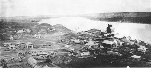 | Mannhaven was founded in 1896 by Henry Mann, Jacob and Fred Bohrer. A grain elevator was built and a riverboat was constructed to haul grain on the Missouri river to Bismarck, the State Capitol. Dr. L. G. Eastman arrived in 1903, later moving to Krem and then Hazen. John Young was a banker and established a newspaper. He lived in a sod house for years after the town died. Young would spend his winters in Minneapolis. With rumors that Krem would become the county seat, many moved to Krem. When the railroad came through these same people moved to Hazen. By 1919 little remained of Mannhaven. Submitted by: Rudy Froeschle, MD, but the credit goes to my brother, Ferd Froeschle, who researched this information in 1988. He died two years later. | ![]() The attached photo shows Mannhaven, ND in its prime. Note the grain elevator along the Missouri river. Courtesy Rudy Froeschle, M.D. and Charles Stroup |