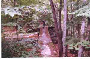 I used to live in Bristol, NH the next town over from Hill, NH. I was told that the old town site was constantly being flooded every spring, and, in fact, you can see dead branches some 30 feet high in the trees that were obviously not from the same tree. In the early 1900's the residents of Hill decided to move the town up on the bluff. They moved buildings and all. All that remains in a few cellar holes, a wroght iron railing that young have grown around and even one with the railing thru it. Also there's a lonely tree in the center which appears that it may have been the town square. Submitted by: Bruce Richardson Update:The information about the Post Office is misleading. There is a sign near the post office which gives a brief history of the town flooding and relocation. The area behind the post office is NEW Hill not OLD Hill. Also it says that it is located on Rt4. While you can get to Hill on Rt4, the post office is actually on Rt3a. To get to old hill, drive about 1 mile past the post office on Rt3a (going North, the post office is on the right). Take a right on Old Town Road(appropriately named). Drive past the cemetery on the left. The street will end at the entrance to the old town. Shop Rd. will be behind to the right. Park there and walk past the road block. Cross the foot bridge and your there. There are two major areas of the defunct town. The first "neighborhood" is on the immediate left, next to the river. Cut through the brush down to the edge of the cliff(a sharp drop of about 30 feet). There are a dozen or so foundations with a rusted sewer pipe running through them all, very cool. On the path above someone has placed a marker indicating the various high water marks. You could see how this seasonal flooding could have destroyed the town. At the bottom of this "road" is the other "neighborhood." This is the intersection which would have been the center of town. Turn left and you will cross a turn-of-century bridge. The state has posted weight limits for this bridge. Someone uses the sign for target practice. The road continues in this direction for several miles, we did not walk to the end. Keep your eyes open and you should find a on old, rusted bicycle. Turn right at the intersection and you should find crumbling sidewalks on either side. Creepy. Walk on the sidewalks and at you will see many of the old foundations and crumbling steps. There are also railings and barbwire fences that trees have grown around. The road continues in this direction for several miles, we did not follow it to the end. The sidewalks continue for quite some distance. There are small stone makers with letters on them. They look recent and may be part of some preservation effort. The foundations are covered by heavy brush in summer. May be easier to see during the fall. The fields and woods around the town are a wildlife preserve, this is posted everywhere. I don't know why they called it "Hill", it's in the middle of a valley! Garth Bruen Boston, MA UPDATE:It was incorporated in 1753 as New Chester by several men living in Chester, who bought 30,000 acres as speculation. During the 1830s, the townspeople learned that there were a least 100 communities in the country with the name "Chester", and they wanted to be different so they renamed the town Hill, after the then current governor, Isaac Hill. The Pemigewasset River, along side which the town was originally built, is a major tributary of the Merrimack River, which provided water and power for the many textile mills in southern New Hampshire, Massachusetts, and Connecticut. The Pemigewasset was prone to flooding because it had to carry off the melting snow from the White Mountains. In order to control this situation, the Army Corps of Engineers proposed in 1937 to build a flood control dam a few miles south of the village. The federal government offered to buy the individual properties, but many of the townspeople wanted to maintain their identity instead of having to move to other communities, and voted to relocate the town when the government also offered to pay to move houses to the new site. Fourteen buildings were moved to higher ground, using railroad winches and horses. The new village was actually established in 1941. It is my understanding that Old Hill is now closed to vehicular traffic. -Clifford Otto |
