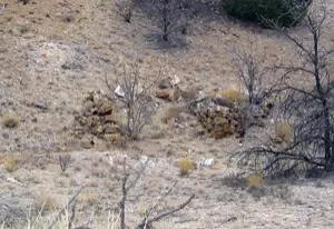 | The town came into existence in January 1879, although it is believed the site had been mined by Indians for turquoise long before the discovery of America. Later, during the 1600's the Spanish were involved in extensive mining operations with enslaved Indian labor. With the founding of Carbonateville several centuries later, the town grew and in 1884 reported a population of around five hundred. However, by the next year mining in the district was on the decline and in 1897 only forty residents remained. Nature has not been kind to the remains of the town, if indeed, there is anything left of it today.Courtesy Henry Chenoweth. |