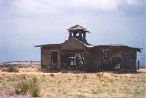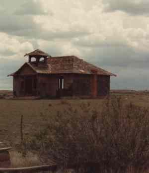 Here was a town that should have succeeded but didnt. The site was in the heart of rich farming land, it was situated on two railroads, nearby mountains abounded in wild game for the hunter, and it was close to other towns. Colfax never really blossomed but it did stay alive for about twenty-five years from 1908 to 1933. The Great Depression of 1929 sealed its fate when gasoline prices forced people to give up driving. Most moved to one of nearby larger towns such as Dawson, Raton, Springer, and Cimmarron which offered greater advantages. Still, the town offers today a forlorn and uniquely picturesque cluster of buildings of considerable interest. Submitted by Henry Chenoweth. ![]() Colfax, new Mexico Courtesy Dolores Steele ![]() 1909 School - also served as a Church Courtesy Dolores Steele