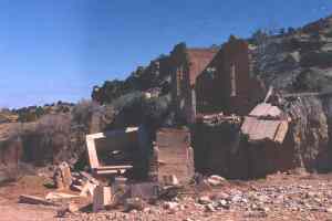Continue east for another 3.5 miles to Hagan. REMAINS: Only a few old foundations and crumbing adobe walls. |