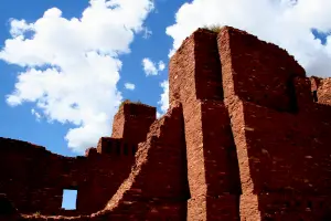 The Quarai ruins at Salinas Pueblo Missions National Monument, located near the land grant community of Manzano, were once home to 300 to 400 Tiwa pueblo-dwellers and feature a massive sandstone church. More than 300 years ago, a Tiwa pueblo near the modern-day village of Manzano was a bustling center of trade and one of the few places in North America where Native Americans were met by Europeans. At Quarai, the church once known as Nuestra Se�ora de La Purisima Concepcion de Cuarac, stands about 40 feet tall, with walls three to six feet wide. The church at Quarai was built during the late 1620s or early 1630s and still includes its original buttresses and some original plaster. It was abandoned in 1677 after a combination of drought, disease and Apache raids drove the residents from the area. Artifacts ranging from Spanish spear heads to pottery shards have been found among the ruins. Most of the pueblo remains unexcavated, and Fulfer said that makes the park vulnerable to visitors who wander off the gray gravel trail. Submitted by: Tyson Woodul QUARI. Tigua Indian, kwa-ri. Site of a spanish mission 10 mi NW of Mountainair. Founded in 1629; now in ruins. The remains of the old church are the most imposing left standing of the 'cities that died of fear.' The stone walls were over 60 ft high and 5 or 6 ft thick, but have crumbled to 20 ft in height. This was a Tiwa pueblo which was abandoned between 1671 and 1680 when the road to Salina was blocked by Apache Indians. Created a state monument in 1935.` Submitted by: Samuel W McWhorter |