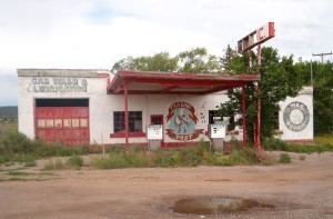 | Tierra Amarilla is the County seat of Rio Arriba County, a part of the Tierra Amarilla Land Grant of the mid 1800s. May be a few hundred souls remaining in the area, but primarily because it is the County seat. Occupied buildings on the main drag are the Rio Arriba County Courthouse and Office Building, the police station, and maybe a get-n-go. As can be seen from the pictures of Tio's Ballroom and the Old Motel, it has the air of a town by-passed by the highway and time. While the residents might resist the Ghost Town label (and of course it's not a true Ghost), it is a mere shadow of its former self. A fascinating stop if headed up or down the road between Durango and Santa Fe. Submitted by: Mike and Diana McDanel |