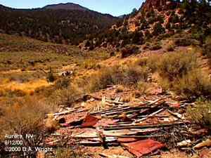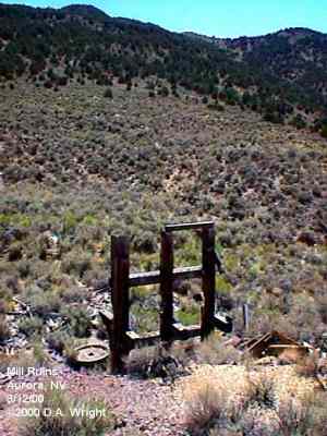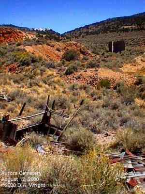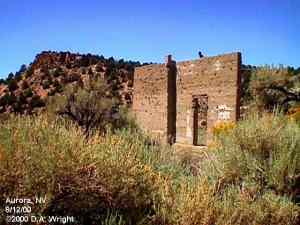in Nevada although there is not much left to see. Great article from 1947 on Aurora. REMAINS: A few scattered remnants. |