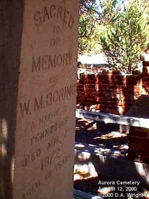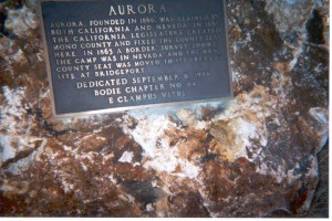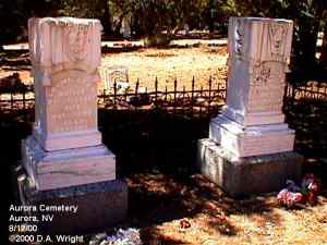 Just inside the Nevada border, the biggest problem of this town was deciding just that. For years the town was governed by both California and Nevada until it was finally determined the town was 3 miles inside the Nevada border. Founded in 1860, this town had produced $27 million in Gold by 1869. There were 17 mills with a total of 175 stamps and the population of the town reached 10,000. Aurora became the county seat. At the same time, water was filling the mines faster than they could pump it out, and thus spelled the end of the town. Today there is only rubble left, especially due to the fact that many buildings were dissassembled and the bricks used to make them sold. - Ghosttowns.com Personal Note: Hi. I found your website today while "surfing." I had been looking for information on Aurora, NV with the intent to include it in a trip with my kids. I was devastated to see the pictures of the town, or what is left of it, on your site. When I was 9 years old, in 1954, my dad took the family to Bodie in his new Buick Roadmaster. Bodie was already somewhat known, but not to many. As we drove down the main street of town, my dad told us he would take us to a "real" ghost town that no one knew of. We left Bodie on a treacherous, winding dirt and rock road that went through a narrow canyon, that opened onto a beautiful small town, which was Aurora. I still remember the town of new looking brick buildings, so unusual compared to the weathered wood of other towns, still in perfect condition. There were dishes and flatware on the tables in some of the homes, glass windows were intact, and carriages and wagons were still parked in town. It looked as though the last person out of town had left just minutes before. This was the most pristine little town I have ever seen, and my dad, a ghost town buff and old car collector, told us it wouldn't last for long. I suppose it is naive of me to believe the town would look like it did then, but SHAME on the State of Nevada for letting this gem fall into the condition it is today. Unfortunately, the photos we took that day were lost in a house fire in the 70's. There is nothing there to bring my kids to. SAD! Sincerely, Terry Schauer Aurora's growing pains were often deadly. On February 8, 18 64, more than 200 ore stamps stopped pulverizing ore in the seventeen quartz mills around Aurora. The silence remained unbroken for more than a day until four bodies swung in a gallows constructed by the Aurora Citizens Safety Committee. The committee formed on the day a W. R. Johnson was murdered. Aurora's problem began a year before the murder and had to do with a dispute between two mining companies. Both claimed the same ore ledge from opposite ends. At dawn on February 1, 18 64, W. R. Johnson, and employee of one of the mining companies, was shot to death. The shooters attempted to burn his body in the streets of Aurora. This brought the citizens to action. They formed the Citizens Safety Committee and pursued the capture of the shooters. They were captured and hung on February 8 th without benefit of trial. About a month later the committee disbanded and the rule of law returned to Aurora. Submitted by Henry Chenoweth. I found a reference in a historical society newsletter " Mark Twain described his mining camp experiences in his book Roughing It. The Carson and Aurora stage routed passengers between the camp and Carson City, with connecting lines to Virginia City and San Francisco. It also carried the U.S. Mail and Wells Fargo shipments. The Aurora stage left daily at 7:00 AM and arrived in Carson City in the evening. A trip to San Francisco took 58 hours. Aurora was a busy place and had its share of trouble. The Civil War caused much friction in Aurora, since the townspeople were divided equally in loyalty to the Union or the South. The U.S. Government depended heavily on regular shipments of gold and silver to finance the war effort. In 1863, the Pont Mining Company employed a private security force known as the Daly Gang to protect their claims. The Daly Gang was suspected of being responsible for a series of shootings and other violence. In December 1863, the Pont lost a lawsuit to the Real del Monte Company and had to relinquish all of their claims to them." Real del Monte had extensive holdings in Mexico and the Virgina City area. Operated from the early 1700's until recently: Real del Monte Mining Corp. Announces Notice from Principal Shareholder and Cancellation of Meeting for the Holders of 10% Canadian Convertible Subordinated Debentures Just found your site. Great job! I would like to make on comment though. You will find in the book "Ghosts of the Glory Trail" by Nell Murbarger, a comprehensive history of Aurora. He refers to a trip taken in 1935 to Aurora which describes it as having been one of the best preserved he had seen (but not to the extent the writer describes). But... Your quotation of an individual who claims his father took them there in 1954 is, I think, a victim of a child's imaginative memory. As stated in Murbarger's book it was rumored in 1948 that the owner's of the townsite - the Cain brothers - were going to raze the town for various reasons listed in the book. When Murbarger revisted the town in 1953 he found it had been leveled by the owners.