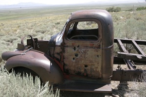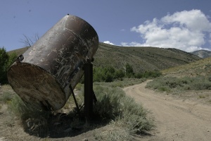 COMMENTS: Pretty Scenery. REMAINS: Nothing UPDATE: There is actually some machinery or equipment left at the entrance to the Battle Creek site. An old flatbed truck and another old pick-up with an Ingersoll Rand Type 40 compressor on it are on the site, as well as an old iron riveted dump bin and various parts of compressors, etc. lying about. Of course, the trucks are shot up. The road is in good shape, and leads all the way to the back of the canyon where the creek cuts down. It leads back around the other side of the canyon where the documented shafts are. Although a 2WD vehicle could do it, I do recommend high clearance since the two-track road does have some growth on it and there is some rutting on the road that leads from Ruby Valley road onto the Forest Service land. There are a few dry campsites along the road going into the aspens along the canyon. - Jared DuBach |