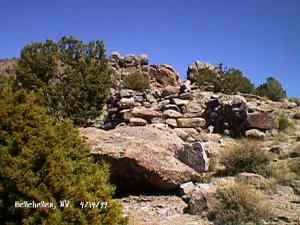 | Bellehelen came to the front in 1904, an outgrowth of the Tonopah/Goldfield boom. Miners swarmed over every mountain range in all directions from the centers of commerce. Bellehelen was founded in a canyon in the Kawich Range, while nearby Golden Arrow and Silverbow also flourished nearby. A post office was opened April 27, 1907, however it was rescinded January 19, 1908. However mining continued on a scale big enough to warrant reopening the post office October 15, 1909. George Wingfield's engineers checked out Bellehelen in 1907, but left empty handed. The camp's better years were 1909 through the next year, when about 500 people made Bellehelen their home. After 1911, the district remained quiet, until 1917, when the Pacific States Mining Company began operations on a large scale. In 1922, the company merged with the Tonopah-Kawich Company, which produced a large mill, but ultimately proved unsuccessful. The mill ceased operations in 1927. Since then, Bellehelen has been ghosted and only faint traces of it remain today in a picturesque setting amid the pi�ons and junipers of the Kawich Range. Bellehelen, NV also had a newspaper. It was published as the Bellehelen Record. It was published for a short run beginning April 1907, and died before the end of the year. Submitted by David A. Wright, Great Basin Research. The west flank of the Kawich range was the site of gold and silver ore discoveries in early 1904. In September of 1906 a townsite called Henry was platted. Businesses included an eating house, a store, and a saloon. By 1907, the Bellehelen Mining Company had been formed and was working the Henry mines. A post office opened in April 1907 with the name Bellehelen. By March 1908 there were six active mining companies in Bellehelen. Activity began to decline in late 1910 and by the beginning of 1911 the town had only fifty residents and the district fell silent soon afterwards. The district ended its slumber in 1917 when several mining companies merged and began operations that lasted until 1924. There were other mining companies that worked the property until 1934 when Bellehelen emptied for good. Absolutely nothing remains of the camp. Submitted by: Shawn Hall from his book Preserving The Glory Days: Ghost Towns And Mining Camps Of Nye County, Nevada Click here to purchase his book!