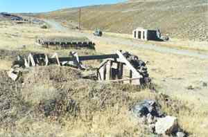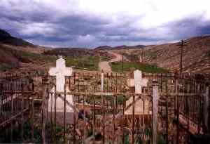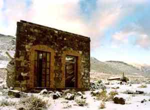Mexicans discovered silver ore here in 1864. Nothing happened until 1879 when a mixed group of foreign born prospectors, mostly Germans and Slavonians, moved in and built a boomtown. The big producer was a mine called the Northern Belle that produced $15 million in silver. But there was no water. Water was transported from a spring nine miles away and cost a dollar a gallon. Whiskey was less expensive. Even the stampmill operated without water creating an atmosphere of dust, which settled in the lungs of the miners, causing many to die of "miners consumption." Candelaria can be found just east of highway 10, north of Basalt. Submitted by Henry Chenoweth. Mexican prospectors first settled the town in 1864 who named the mine and the town after a Catholic Mass day. Beginning in 1880 the area began to prosper and in 1882 a good water supply and a spur of the Carson & Colorado railroad came to the camp. In its heyday, Candelaria could boast of two hotels, stores, offices for lawyers, three doctors and countless saloons. The financial panic of 1893 caused may mines to close down. Most of the people deserted the town but a few remained. The following seven years proved difficult for the remaining citizens�now a dry, wind swept, desolate place, bitterly cold in winter and unbearably hot and dry in summer. But still some remained hoping beyond hope for a recovery that never came. By World War II it was truly a ghost town.