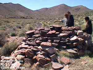 Situated alongside the grade of the abandoned Las Vegas & Tonopah Railroad. REMAINS: Low stone ruins, what appears to be a furnace. |