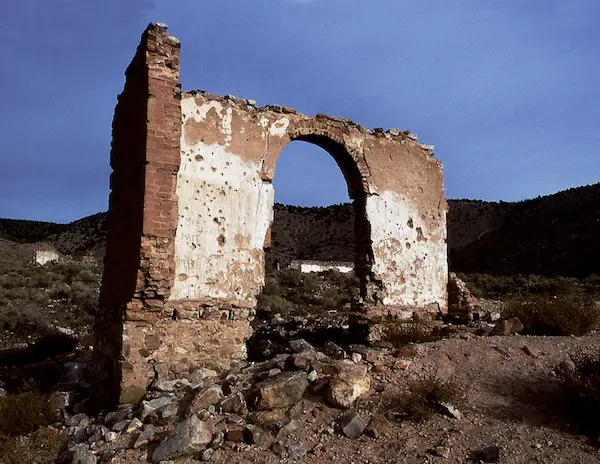 David A. Wright standing in archway of Delamar ruin. April 13,