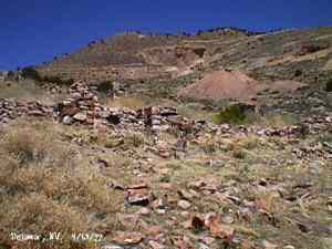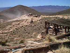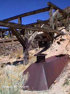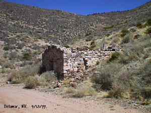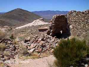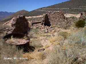 It was in the early 1890s when a wealthy Frenchman, Captain Joseph Rafael De La Mar began development of the rich mining camp in the Delamar hills. The town boomed from 1895 into the twentieth century, finally becoming a ghost town at the beginning of World War II, nearly a half century later. Delamar was known to many as the �widowmaker.� Several dozen women were widowed her. Because water was scarce, the crusher was run almost dry and created a fine dust that contained silica. The deadly dust was inhaled by the men, causing silicosis and an ultimately death. The dreaded dust also pierced lungs of women, children and animals. Water had to be hauled to all houses except one where it was tapped. In this house lived the �last rose of Delamar.� Agnes Horn, who had been there since childhood. Her husband was one of the young men felled by the dust. She was one of the camp's first settlers and among the last to leave. She was buried in the cemetery, beneath a rose bush that had once bloomed at her window. Submitted by Henry Chenoweth.