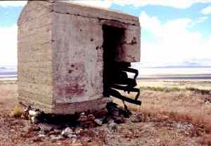 | Fairview is often referred to as the town that wouldn't stay put. The first site was on a large, flat piece of ground that provided ample room for building expansion when needed. The most imposing structure was the town bank and, in particular, its vault. As time and circumstance would have it, the bank vault is still standing and is the last remaining vestige of Fairview #1. It can easily be seen from the highway. The population became restless having to travel the distance to the mines and mills so they moved everything except the bank vault to a spot nearer the diggings. This spot was in a narrow canyon forcing expansion lengthwise as there was no other direction to go as the width was limited to one block. The town was getting longer and longer so they moved a third time. This time the move was around the mill and here they stayed until the only occupants were ghosts of the past. Submitted by Henry Chenoweth. Fairview, Nevada: Anyone who visits Fairview will enjoy Nell Murbarger's article from the Desert Magazine October, 1955 issue before they go: http://www.dezertmagazine.com/mine/1955DM10/index.html . Starting on page 11, its the story of the last residents of Fairview, Sylvia and Ed Stratton, who've been there for forty years, circa 1955. A DM map and four photos, including one of Nell standing at the bank vault's entrance are included. Big Sandy |