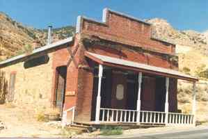 | Without knowing it at the time, Allison Orrum Hunter Cowan Bowers was to keep the name of Gold Hill from ever being forgotten. "Eilley", as she was known, was born in Scotland and somehow found her way to America and, ultimately, to Gold Hill. A Stephen Hunter converted her to the Mormon faith and when she reached her fifteenth birthday, hustled her off to Nauvoo, Illinois, where they were married in the church. Eilley did not take kindly to having another woman share her husband's bed when he took a second wife under the policy of bigamy. She became the ex-Mrs. Hunter and married Alexander Cowan, also a Mormon and settled in Salt Lake City. Soon, the Church sent them to colonize the area near Genoa, Nevada. Not long after, Brigham Young recalled all the Mormon settlers in far off places. Eilley refused to go and bade her second husband goodbye. She stayed in Nevada. She followed the exodus to Gold Hill where she met and married a Sandy Bowers. Together they amassed a fortune of millions of dollars from claims others thought practically worthless. With tremendous wealth at her disposal, Eilley decided to build a home that would rival any in the state of Nevada. She did exactly that in 1862, building a mansion that would cost $300,000 and would be expensively furnished with items bought on a two-year tour of Europe. This was her dream, but not her husband's. He refused to live in the great house, preferring to join his old friends in the saloons of Gold Hill. In 1868, Sandy Bowers became suddenly ill and died. He was thirty-five years old. She was 49 years old. Misfortune suddenly descended upon Eilley, forcing her to sell the great house. The decline in her fortunes continued and she died in 1903, a lonely, penniless and broken woman. Today, the house and grounds are part of a county park. The mansion is intact and is open to visitors. The fitting conclusion is the resting-place of Sandy, Eilley and an adopted daughter, Persia, on a hill a few yards behind the great house. Submitted by Henry Chenoweth. Gold Hill was never a town or even a settlement. It was a mining complex to process ore from a group of claims that included the Gold Hill mine. Miming operations began in 1927 and ended in 1933 when ore values began to fall. Miners worked the Gold Hill mine periodically but not to any great extent to 1942. Production value from 1930 to 1942 for the Gold Hill mine and other operations stands at just under $1,000,000. Only the mine hoist and foundations for the mill exist. |