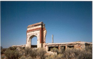 | The Pacific Reclamation Company, of New York, looked upon the semi-fertile lands in the region of the headwaters of the Humboldt River as a place to build a showcase community of farms and a model city a short distance northwest of Wells, Nevada in 1909. Plans called for 40,000 irrigated and non-irrigated acres to be cultivated, surrounding a modern city of 7,500. In 1911, a city of graded streets, cement sidewalks, fire hydrants and street lights was laid out with a four square block commercial district, which included a showcase 3-story brick hotel. In anticipation of many coming here, the Southern Pacific Railroad built a spur to town with a large depot and tree shaded park. By 1912 the town began to populate and acreage was sold. A newspaper, called the Metropolis Chronicle, began publication to boost the town and sales of property. A dam was built across Bishop Creek northeast of town and an elaborate water system of ditches, canals and municipal water system was built. The Pacific Reclamation's dream was rudely awaken as it began when farmers downsteam on the Humboldt as far as Lovelock began to legally complain due to the over use of water in the headwaters region, with Pacific Reclamation being one of the biggest targets. The resulting court decision left Pacific and Metropolis residents with water enough for only the town and 4,000 acres of farmland. Added to that were problems caused by drought and a plague of crickets. By 1913 the bubble was burst and the Chronicle ceased publication. Many families left the area, but those who stuck it out were rewarded soon thereafter by increased water due to acquiring the rights from those that left, which resulted in more than fifteen years of good times by all and Metropolis thrived through with a smaller population. The ornate Lincoln School opened in 1914 and Metropolis settled down to steady agricultural production until about 1925. Farming decreased steadily afterward and the Southern Pacific Railroad removed its spur that year. Buildings were eventually abandoned, sold or moved away. The hotel burned in 1936 and the Lincoln School taught its last class in 1947. Metropolis is dead as a town, thought the abandoned ranches were eventually all bought up and incorporated into several large ranches today. David A. Wright Even the best-laid plans sometimes go wrong. That seems to be the history of Metropolis. It was a planned town intended to be the center of a huge farming district. It all started in 1909 with the purchase of 40,000 acres of land below Emigrant Canyon. Thirty-four homesteads started a high-powered promotional campaign that made fantastic claims as to the soil’s fertility. Many young families were attracted to the Metropolis most of whom were not prepared for the hardships of farming. The construction of the Bishop Creek Dam was to provide a plentiful source of water for the town and farms. Most of the dam comprised 6.5 million bricks left over from San Francisco’s devastating earthquake of 1906. Once the dam was finished, the promotional campaign increased. The Mormon Church encouraged people to move to Metropolis and many did. About 95 percent of its population was Mormon. By the end of 1911, there were 700 residents. Its biggest boom year was 1912 and Metropolis’s future looked promising with the coming of the railroad. But it was not to be. A group of Lovelock (a neighboring community) farmers filed suit claiming the Bishop Creek Dam impeded their downstream water rights. This prevented the reservoir from filling that greatly reduced the number of acres that could be irrigated. Metropolis’s wet years ended in 1914 when exceptional dryness devastated crops. The draught extended through 1918. A typhoid epidemic it the town in February 1916 killing many of those who had stayed. By 1920 less than 100 people remained. Over the years, the buildings in the town either succumbed to the elements or were moved to other locations but many ruins tell the town’s story.Submitted by: Shawn Hall from his books Old Heart Of Nevada: Ghost Towns And Mining Camps Of Elko County Click here to purchase his book! Connecting The West: Historic Railroad Stops And Stage Stations In Elko County, Nevada Click here to purchase his book! |