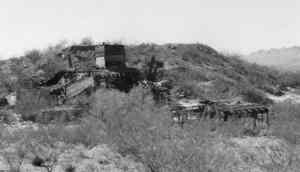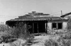 Gold was discovered in this town in 1897 by G.F. Colton. By October 1898a post office and camp were in place roughly 3/4 of a mile from the original site. By winter of 1899 the population increased to a point that could call it self an official town. By 1907 it boomed to a point of 5000 people with over a dozen saloons, a telephone exchange, and 44 working mines. A panic hit between 1907 to 1910 where low grade ores need more capital for continued mining. After many years of drifting off a new mill was built in 1934 but shutting down just after 1935 due to lack of ore. The name is still a mystery where it came from there is much speculation about this. Some think it came from the name off a box of matches. Submitted by: Michael Mrofchak UPDATE: I was cruising your site when I noticed there was some discussion as to the origin of Searchlights name. I have immediate relatives who have owned a small vacation home in Searchlight for well over thirty years. As it was explained to me, searchlights were once used to guide patrons into the brothels that were in area. Hence the town was named so. Drew DeBois Tigard Oregon |