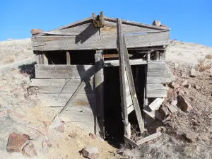 The town of Tunnel was started after Seven Troughs was in full production for the purpose of tunneling through the mountain and hopefully intersect the vein that was being mined at Seven Troughs. Much like the Sutro Tunnel near Virginia City it was also hoped to provide drainage for the mines and an easier way to ship the ore. There is not much left at Seven Troughs to see but there are a few foundations and street outlines. It is also a very rough road to get in, subject to flooding as it is in a very narrow canyon. At the mouth of the canyon there is the remains of another town which literally did wash away in a flash flood. That town was named Mazuma and all that is left is debris along side the road. One interesting object next to the road is an old safe that washed out of the bank. It is of course empty, but too heavy to move. Submitted by Digger Bob. |