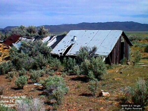 untamed as any camp and worse than many. Submitted by: Shawn Hall from his books Old Heart Of Nevada: Ghost Towns And Mining Camps Of Elko County Click here to purchase his book! Connecting The West: Historic Railroad Stops And Stage Stations In Elko County, Nevada Click here to purchase his book! Tuscarora has a rather unique beginning. Unique in the sense that it took almost ten years after the first gold discoveries were made before the town began to grow. Placer deposits were discovered in July of 1867. Nothing much happened until 1869 when the first Chinese move into the area. By the end of the year more than 200 Chinese miners had arrived and formed a Chinatown adjacent to the Tuscarora camp. The Chinese became more efficient than the whites in placer mining primarily because they were willing to work harder and longer. In 1870, Tuscarora had a population of 119 of which 104 were Chinese and 15 were white. During the early 1870s, the frustrated white miners left the placer operations and began prospecting in the nearby hills. Silver was discovered and Tuscarora became a silver mining town. Mills were built to process the ore, stage lines included the town in their routes, businesses flourished, schools were built, and Tuscarora became the place to be. The two most productive years were 1878 and 1879. The population had reached 1,500. In each of those years, Tuscarora’s mines yielded more than $1 million worth of bullion. But fires that had spared the town during the first few years of its existence began to plague to town. That, together with a new discovery in the Wood River region of Idaho started a small exodus from Tuscarora. During the mid 1880s, the big mines of the 1870s began to play out and the population had slipped to less than 1,000. The town continued to suffer and many businesses closed their doors. The stage coaches were full leaving town and empty upon their return. During the ensuing years there were many attempts at revival but none succeeded in returning the town to its previous glory. Today, Tuscarora is classified as a ghost town although there are a few people still living there. Visitors are guaranteed to enjoy themselves. Tuscarora, Nevada: Nel Murbarger wrote a piece for the January, 1950 issue of Desert Magazine, Printer of Old Tuscarora. Eight photos and a DM map, plus a lot of historical minutiae. Starts on page 27. A good read.