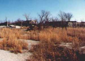 2 miles south of Picher. Almost nothing remains. REMAINS: Abandoned, weed overgrown buildings. |