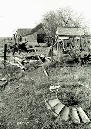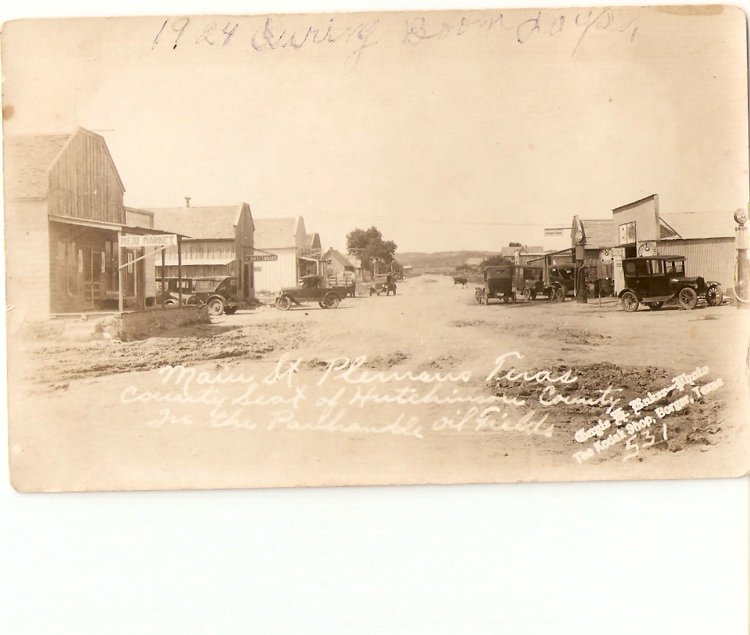 The Canadian River remained a barrier to travel to the north with the Plemons Crossing remaining about the only place one could cross it. The town grew slowly over the next twenty years to about 250 people and more than a dozen business buildings lining the dirt street. They had built a larger court house and a school. 1926 was a big year for Plemons with the opening of the half-mile long bridge across the Canadian just south of town which gave them a considerable increase in traffic. That was also the year the Chicago and Rock Island Railroad between Amarillo and Liberal, Kansas came through, bypassing Plemons by about eight miles to the west. Then the town of Stinnett was founded as a shipping point on the railroad where it crossed the Plemons to Dumas. Within four months some $400,000 worth of lots had been sold in the new town of Stinnett and the population stood at 2500 people, ten times that of Plemons. About the only benefit Plemons could see was the people who traveled the nine miles from Stinnett to file their deeds at the court house. Soon most of the people who worked at the court house had moved to Stinnett.