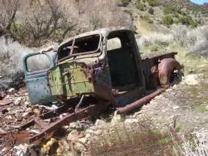 I know nothing about the history of the area. Everything looked fairly old, possibly early 1900's. It didn't appear as if there was an actual town, just scattered miners cabins and mines. If anyone has information about the area I would love to hear it. Submitted by: Ryan Crockett I visited this ghost town on April 17, 2010, and sadly the log cabins have all burned down. The mine entrances are still available and intact, and a small structure built into the side of the hill across from the mine entrance is intact as well. There is also a cool old rusted out truck in a pit near one of the mine entrances. The only thing left of the old log cabins are the cement foundations, and the spring base of the chair featured in some of the old Death Canyon ghost town photos. There are a ton of beer bottles a makeshift fire pit near one of the foundations, which very well may have been the reason they burned down. Sariah Meadows |