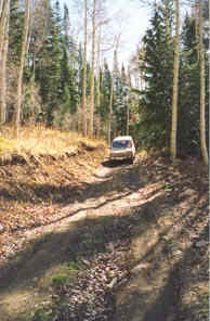 | Miners Basin, sometimes known as just "Basin" is just East of Moab at the 10,000 foot level of Mount Waas. Copper was discovered here in 1888 but a mining district was not established until 1898. During that same year, the town of Miners Basin developed and eventually reached a populaiton of 75-80 people. There were 2 saloons and restaraunts, a blacksmith, hotel, post office, miners cabins and more here. By 1908 there were only a few families left. The mines barely reached 50-150 feet. Today, there are a few buildings left and some remnants of the mines. |