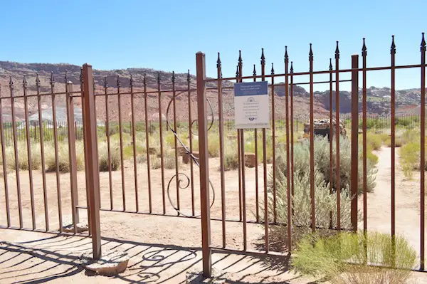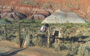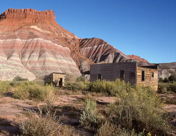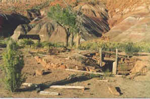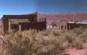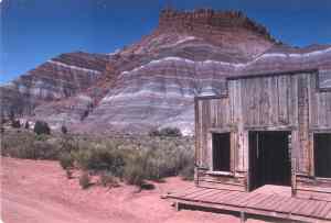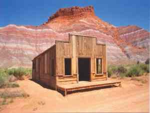 farther along the road is Pahreah, the original Mormon town. REMAINS: Movie set one location and original remains another. UPDATE: Pahreah was destroyed by fire set by arsonists in late 2006. People are talking about re-building, but nothing is official as of late. |