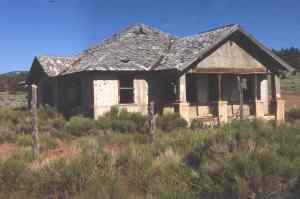 Settled by Mormons in the late 19th century; first had the name Adair after the most prominent family; as the settlement grew, the name was changed to Houston, and then in 1910, it was changed again to Winder--all of these were the names of prominent Mormons. In 1915, another settlement grew up about four miles north of Winder, by the name of Henderson (another prominent Mormon of the area); it got a post office, and grew for short period of time. However, by 1924, the post office in Henderson closed and most of the population moved to Winder. Then, in 1917, post office decided on its own for another name change (because there were too many 'Winder's: the new name was Widstoe, yet another prominent local LDS official. (Population in 1920 census was 1100). But the climatic and water problems of the valley were too much for that many people, and they began to move away. By 1935 the population was around 20; in 1936, the federal government bought the town--land, buildings, etc. At that point many of the buildings were torn down, but as of 1998, there were still (as I remember) around 3-5 houses, a prominent and large building which was probably the school, and some ruins (wood!) spread over a large area; probably at least one of these, the farthest one north along the road, is actually the last building left of Henderson, but I am not certain. Submitted by Kurt Wenner. The town is located on the East fork of the Sevier River, approximately sixteen miles northeast of Bryce Canyon. One of the first Euro-American settlers in the area was Isaac Riddle, who built a temporary ranch in the valley in 1876 which became a stop for the Hole-In-The-Rock pioneers in 1879. Jedediah Adair, along with one of his plural wives, Julia Ann, and eight children, eventually bought the land and moved onto the property in 1902. They practiced a new farming technique called dry farming. Other settlers moved into the area when they saw the Adair's success. In 1910, Julia Adair donated 40 of her acres for the beginnings of a town. It was established as "Winder" (named in honor of President John R. Winder [First Counselor in the First Presidency of the Church of Jesus Christ of Latter-Day Saints]). The standard of living was low with water having to be brought into town in barrels, fuel was wood from the surrounding hills, and coal oil lamps or candles lighted the homes. Running water, piped in iron pipes from a nearby spring, was brought to the town in 1915. On April 13, 1914, the town grew when it added another 160 acres (donated by Carel & Lottie Mangum and Quince K. Kimball). By this time, the town had two hotels, an LDS church, four stores, a post office, a confectionery, and a population of 310. The town had also built a new 3-room schoolhouse. In April, 1917, Winder changed its name to Widtsoe, in honor of LDS Church Apostle and dry farming expert John A. Widtsoe. In 1919, the Forest Service moved its district office, containing the first telephone, from Panguitch to Widtsoe. The 1920 census puts the population of Widtsoe at approximately 365 people (not 1,100 as you have listed) - this is taken directly from the 1920 census (copies of which are in my possession). The town reached it's heyday in the early 1920's. There was talk of moving the county seat from Panguitch to Widtsoe. In 1923, W. F. Holt, the financier-developer of Imperial Valley, California, was interested in investing capital in the area by Quince Kimball, by then a prominent State Senator. Holt (who also founded the nearby town of Osiris) bought the Widtsoe Hotel, built over ten homes, constructed dams and irrigation canals, provided funds for telephone lines, and brought in high-altitude lettuce seed (which was considered to be the best iceberg lettuce in the world). Holt spent nearly $300,000 in the area. Severe drought, erosion of the land, drastic climate fluctuations, and large numbers of rodents took their toll. People began to leave "the most destitute of any area in the state". By 1934, only 40 families remained in Widtsoe. By that spring, the residents' plight was critical. Two residents wrote a petition, which over 40 residents signed, requesting federal aid. Officials from the federal Resettlement Administration (RA) determined that the people should be moved out of the sub-marginal area since the land could no longer support them. The residents held a town meeting and, on February 8, 1935, voted, with no coercion by the officials, to accept the government's offer of resettlement. The government purchased 30,000 acres from the residents and resettled 29 families to other tracts throughout the state. They spent a total of $81,300 (not including "operating costs") on the Widtsoe Project, which was used as a model of resettlement for the Western States. The project received national recognition. Dorothea Lange, a well-known photographer hired by the RA, visited the town in 1936 to provide publicity photos for the project. Also, an article in "Nation's Business" discussed the Widtsoe Project. The final families to leave Widtsoe with federal assistance left in March 1938. The name of Widtsoe was taken off highway signs and maps. Today, only a few weathered buildings remain; including a barn, the original 1-room schoolhouse, the Woodard house with assay office extension, another private residence, a few sheds, and root cellars. There is also the debris from other buildings. A weathered and bullet-riddled "stop" sign still stands at the west end of main street. The Widtsoe Cemetery is still in use with the most recent additions being infant twins buried in 1999. One third of the town site is privately owned, another third is owned by the State of Utah, School and Institutional Trust Lands Administration, the final third (including all streets and the city park) is owned by the federal government. The town is a poignant reminder of a by-gone era and the ephemeralness of life, but if you visit, remember DO NOT remove ANYTHING from the site as t