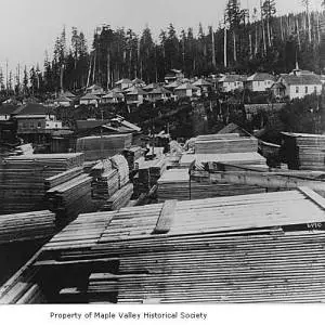 On November 23, 1904, Kerriston Post Office opens. James W. Kerry is the first postmaster. The postmaster owns the Kerry Mill Company and the mail is distributed from the company store. On January 31, 1935, the post office closes. Submitted by: Ron McDonald I found that there are two Kerriston's, one, inhabited, the other is the true ghost town site. The inhabited Kerriston is nearest to Hobart, about 6 miles east, via 208th St., becoming SE 364th or Kerrison Rd. as you near residences. You get to the very end, and the road splits. There are gates across each side. The Raging River is probably just beyond and runs north (downstream) and east (upstream) from this area. If you can cross the river, Old Kerriston site would be about a mile north, on the east side of the river, just south of Kerriston creek confluence. |