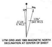 At the equator, one degree of latitude or longitude represents approximately 70 statute miles. At higher latitudes the distance of one degree of longitude decreases. Latitude stays the same because they are always equally spaces apart. If you look on a globe you will see this to be the case. On the other hand , if you look on a globe you will notice that the lines of longitude get closer together as they approach the north and south poles. Degrees are not accurate enough to find a precise location. At best, one degree of latitude and longitude would define a 70 square mile area. To over come this problem, 1 degree is divided into 60'(minutes). So if 1 degree equals 70 miles and one degree can be divided into 60' then 1' equals 1.2 miles. Dividing 1 degree into 60' allows one to calculate their position with much better accuracy. In some instances even more accuracy is needed. To do this we can divide 1' into 60"(seconds). If 1' equals 1.2 miles and we can divide it into 60", then 1" equals 0.02 miles. It it is worth taking a few seconds to memorize the following numbers. It will help you to use latitude and longitude more effectively: 1' = 1.2 miles 1" = .02 miles If you look at the picture above you will notice the latitude and longitude in the lower right hand corner of the map. You would read it as 35 degrees 15 minutes north latitude and 111 degrees 30 minutes west longitude. Below the title you will notice the words 7.5 minute map. This means that the map covers an area of approximately 7.5 minutes of latitude and longitude. UTM Stands for Universal Transverse Mercator. It is another grid system that can be used to find your position. It is most commonly used in the military and for research as well as survey purposes. The UTM system divides the surface of the earth up into a grid. Each grid is identified by a number across the top called the zone number and a letter down the right hand side called the zone designator. For example, Phoenix Arizona is in UTM grid 12 S.