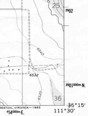 Knowing how to read a USGS topographical map is essential to successfully finding a ghost town. USGS topographical maps are useful because they show the terrain and lay of the land as well as feature like roads, structures and mines. As you read this, it would be helpful if you also had your own topographical map to refer to. The first thing to notice on a topographical map is the title. It is found in the top right hand corner of the map: ![]() The title for this particular map is, "Sunset Crater West Quadrangle." At the corner, but in smaller print is another title called Strawberry Cheater. That is the title of the next topographical map to the northeast of this one. You will find similar titles on all the corners of a topographical map as well as halfway between the corners. Use that information to find the other maps that you may need.