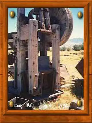 This is a two stamp mill, now found as an outdoor display at the Laws, California railroad museum. Photo taken February 1996.