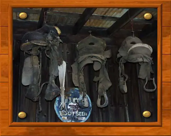 Old horse saddles.