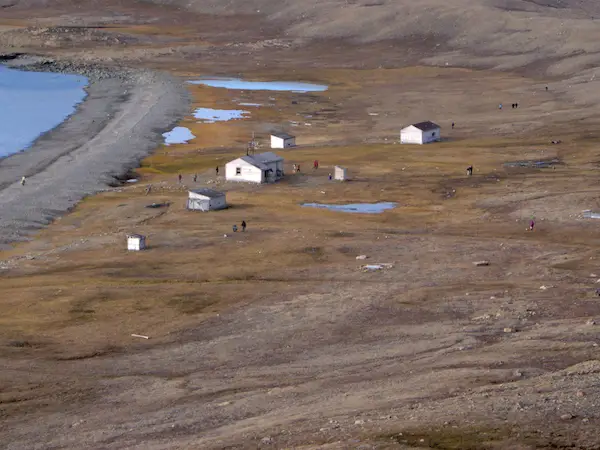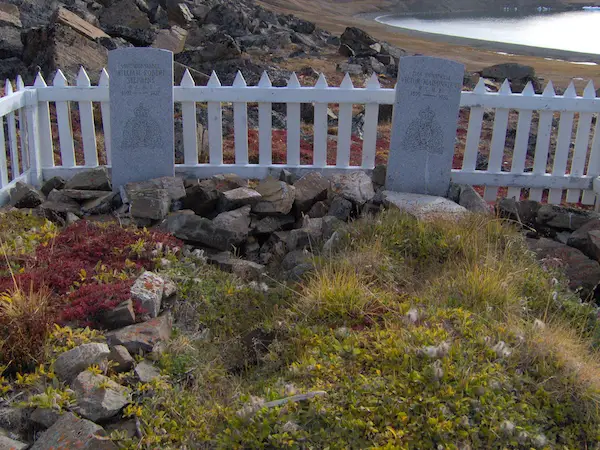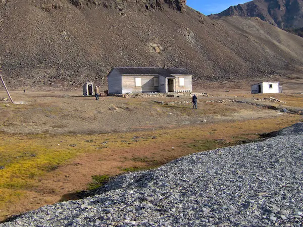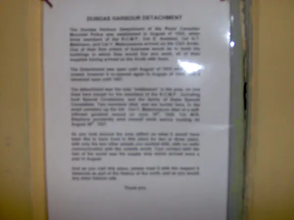 | Visited here in August of 2007 while on an Artic cruise ship.Dundas Harbour was built in 1924 and inhabited from 1924 - 1933 & 1945 - 1951.The reason that this outpost was built was due to Canada's concern of the threat of sovereignty of their Arctic Archipelago islands.There are only 6 buildings that make up the town; a Royal Canadian Mounted Police Building, Hudson Bay Trading post, 2 storage buildings and 2 outhouses.A small cemetary is located just north of the town containg 4 gravesites, one for Cst Victor Maisonneuve who committed suicide in 1926, Cst William Stephens who accidently shot himself while walrus hunting in 1927,a baby of one of the special constables daughter, and a Scottish Whaler.The only way to get to Dundas harbour would be by ship,plane or maybe dog sled in the winter. The closest town is Resolute, about 200 miles away.Muskox graze all through the site and walrus can be seen just offshore.Average temps in August would be about 40 degrees F. Submitted by: Mark A. Stidam | |