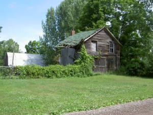| Blairton was an iron manufacturing town of the mid 1850s on the shores of Crowe Lake, a location accessible only by water as roads were nearly unusable. The railroad eventually came to Blairton in 1866 that made the mining operation more profitable. The mine was an open pit mine close to the lake and the town located to the rear. With the railroad, the town began to grow and soon had a population of around 500 inhabitants. The town prospered for about ten years when water became its worst enemy. Ice floes tore away the railroad trestle. Water began to seep into the mine. Even though the railroad was repaired and service restored, the damage had been done and the mine had been closed never to reopen. Blairton became a ghost town. During its heyday, the town had boarding houses, stores and about forty houses for miners with families. Much remains for the ghost towner to see in Blairton. Submitted by: Henry Chenoweth | ![]() Mine Manager's home Courtesy Clayton Self |