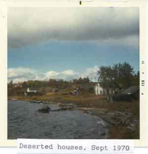 Just about all buildings are destroyed but water tower base remains and some houses which are used as summer camps. Lots of "stuff" was left behind including old fishing boats, stoves, furniture and some relics of the fishing trade. Still evidence of the hotel and foundations of some buildings. REMAINS: Still 2 or 3 houses intact. Base of water tower visible. |