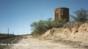 | Exit 289 on I-10 from Tucson to New Mexico, will bring you north of the Interstate and to Pantano Road (in the year of 2000 the road change name to Marsh Station Road, but is still marked as Pantano Road on some maps) and to Pantano Station.Not so far from desert wash, Cienega Wash, in the year of 1858 was build a stagecoach station (Pantano Station), were was possible to give the horses water. The Southern Pacific railroad reach Pantano Station in the year of 1880, was possible to fill steam looks with the water. Apache attacks, stagecoach robberies and train robberies was almost all day�s coast. Only thing remaining to day is one old water tank for steam looks, beside the railroad track. Submitted by: Bobby Zlatevski | ![]() Pantano Station Courtesy Bobby Zlatevski |