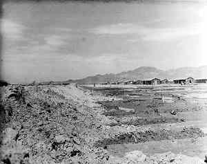 Poston was chosen as the site of three "War Relocation Authority Camps" for Japanese Americans interned under President Roosevelt's Executive Order 9006. The Colorado River Relocation Center, which operated from April 1942 to March 1946, housed about 18,000 individuals, and was the third largest city in Arizona at the time. Those interested in additional information may visit the University of Arizona's Website on the subject: www.library.arizona.edu/wracamps Submitted by: Kurt Wenner UPDATE: The auditorium pictured on your site for Poston camp one has recently burned down; according to a local, who has been in Poston all her life, arson was suspected, but to date no one has been charged. Still on the site are eight dormitory buildings and a metal barracks, as well as the foundations and walls of the auditorium. Apparently, the site was used as a school after the war, which may explain the metal warehouse in the center that has more modern conveniences within, but is obviously abandoned. As for camp #2, it is located where an abandoned elementary school stands. No trace of the camp remains. Anyone who is searching for the sidewalk markings that the Poston monument promises is bound to be disappointed, for there are none to be seen. Camp #3 can be seen as one of the many cotton fields that mark the area. J. Grumbo |
