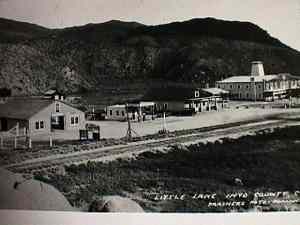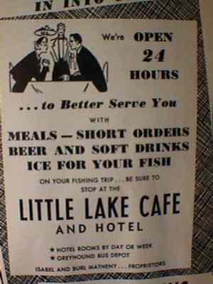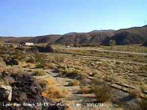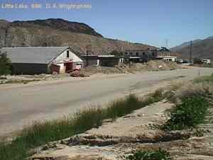 | Little Lake as a rest stop for travelers has a long history. Once called Little Owens Lake, its sparkling surface water stands in stark contrast to the black basalt lava formations surrounding it, nestled tightly between the foot of the Sierra Nevada and the Coso Range at the northern fringe of the Mojave Desert. Situated along a natural corridor leading travelers to Owens Valley, Little Lake has always beckoned with its restful environment, which entrepreneurs capitalized on. At first, prospectors and other hopeful settlers of the Owens River, Cerro Gordo and Darwin communities stopped and partook of the overnight accommodations. Then in 1905 the City of Los Angeles cast its eyes upon the abundant waters streaming down the Sierra along its eastern spine, Little Lake was considered a natural holding pen for a 250-mile long aqueduct that was built to divert the liquid gold to a thirsty city. While building the aqueduct, Southern Pacific built the "Jawbone Branch" from Mojave to Lone Pine, completed in 1911. Later, especially since World War Two, sportsman traffic threading northward along US395 considered Little Lake an important stop to spray cooling water on boiling radiators, feed hungry stomachs or to get gasoline. The pride of Little Lake was the Little Lake Hotel, which still stands today, although somewhat battle scarred. A fire in 1989 destroyed the upper story, although the post office still held its door open on the ground floor and the owners of the building still lived in their apartment in the next room. The "Jawbone Branch" continued service through 1982, when the line was abandoned north of Searles (junction with the Trona Railway). The tracks continued to stay in place and rust until salvage operations were commenced by Union Pacific in 1998 and completed in 1999. Two separate flash floods occurring two weeks apart in the summer of 1998 attempted to bury what is left of Little Lake. The Little Lake post office closed in 1997, although a few residents in the old town and surrounding Rose Valley still get rural delivery via Inyokern. Today, Little Lake was somewhat bypassed when US395 was made a divided 4-lane highway in 1958, although an access road (the old highway alignment) still goes by for a short distance. People speeding by in their fancy SUVs have other northern sights in mind, Little Lake has dropped from importance as a stop for provisions - David A. Wright - Great Basin Research. |