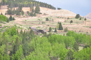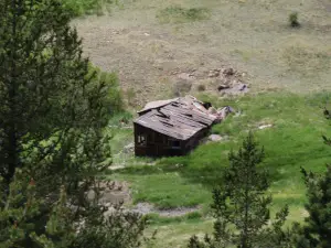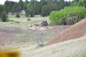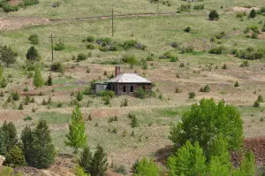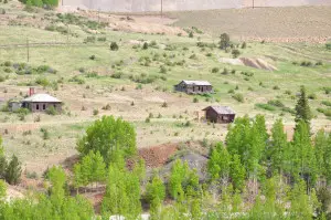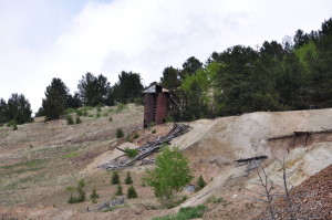 | Anaconda was a composite of three other mining camps: Squaw Gulch, Mound City and Barry. Once a bustling city of over 2,000 persons, the town was supported mainly by the Mary McKinney mine that yielded more than eleven million dollars in gold. It is said the mine was so rich ore was plowed out by ox teams. Anaconda had its peak in the mid 1890s . Huge log barriers holding back ore slack from the highway mark the site of Anaconda together with the old jail and a few crumbling cabins. Submitted by Henry Chenoweth. A cowboy and part time prospector named Bob Womack discovered gold in Cripple Creek, CO in 1890. The three square mile district became home for more than 50,000 people by 1900. To put things in perspective, the gold mined in this area was greater than any other gold mining operation ever conducted in the United States combined. Other towns in the area included Goldfield, Elkton, Altman, Independence, Anaconda, Gillette, Cameron, Beaver Park, Arequa and Lawrence. Anaconda’s peak population was about 1,000. Founded in 1894, the town was sprawled along a half mile of Squaw Gulch, about halfway between Cripple Creek and Victor. In 1892 the peak output for the mine was $50,000 per month. Before 1890 most of Teller County was uninhabited. It was an area that people traveled through to get somewhere else via the old Ute Pass Trail which was an important route because it offered passage through the front range of the Rockies for Indians, buffalo, explorers, prospectors, and cowboys and their cattle. Originally started as a miner’s town, Anaconda grew out of convenience and necessity. With so many big mines concentrated around Squaw Gulch, it was only natural that the people working them would want to live nearby. Among the big gold mines in or near Anaconda were the Mary McKinney, the Anaconda, the Doctor Jack Pot, the Chicken Hawk, the Dolly Varden and the Morning Glory. With those industrial enterprises supporting the town, unemployment was not a problem. Unlike some of the other towns of Cripple Creek, Anaconda developed its own business district. According to the book “Ghost Towns” by Leland Feitz, Anaconda sported its own hotels, saloons, drug and grocery stores, doctors, lawyers, printers, music teachers, dressmakers, an optician, and even an artist. As was the custom, the town had a nice school house and several churches . The town even had its own jail. The merchants of Anaconda howled and complained when customers paid for goods and groceries with “worthless” Mary McKinney stock but those who took the stock could not have been entirely displeased with the company’s steady history of dividends or the $11 million in gold it produced. The mine itself had the last laugh however. A tenderfoot doing lease work in the Mary McKinney Mine touched off a powder box with an experimental electric shooter. A hole was blown in the roof of the shaft house and the town was showered with rocks. Town wags said the hole was caused by a pump blown up from the bottom of the shaft. Conventional wisdom held that a pump blown out with that much force would not return to Earth “for at least two days.” For the most part, Anaconda was a peace loving town. It did not have near the population of Cripple Creek or Victor, and fewer recreational facilities existed there. Consequently, most of the hard drinkers and hell raisers went to the bigger cities to celebrate the end of the work week. In one of life’s little ironies, the Arno Mine, located within the town limits of Anaconda, was a stronghold for some of the District’s outlaws. It would be less than truthful to describe Anaconda as a quiet town though. Imagine living in a town where your neighbor’s house is about an arm length from yours and you can hear his every move. Add the noise from the constant hustle and bustle of people in the nearby saloons and shops at all hours of the day and night. To this, add the non-stop clattering of horse hooves and mine machinery. Then factor in the loud whistles from 16 nearby mines announcing three shift changes per day. Top this off with the sound of 67 trains circling completely around your town everyday. Remember that you also live in a gulch that has a powerful echo. One could forgive the fine people of Anaconda for being a little cranky now and again. Anaconda hit its peak just as the Golden Era of the Cripple Creek District ended. With gold production in decline and the deep levels of the mines flooding, Anaconda was poised to begin a decline of its own. During the winter of 1904, a fire started that pretty much annihilated the town. Unlike the massive relief efforts that rebuilt Victor and Cripple Creek after their fires, Anaconda was left to die a slow death. After the fire, most residents simply moved away. Anaconda’s population fell from 1,000 to 250 and continued a steady decline. The mines were still in operation, but the town would never be the same.