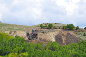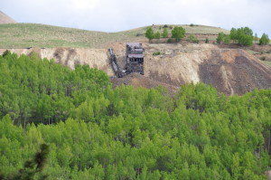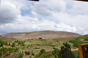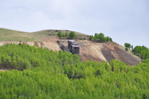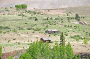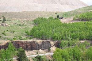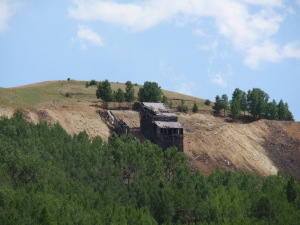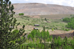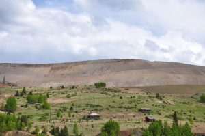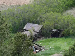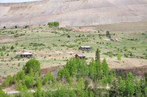 A few buildings are standing but are slowly being burried by the slag piles of the huge open pit mining operation. The small gage railroad from Cripple Creek (tourist ride) ends at Anaconda. REMAINS: Some buildings, but roads and property are marked as "private property" belonging to the mines. The weather, winds and current mining operations are slowly overtaking the remaining ghost town buildings. |