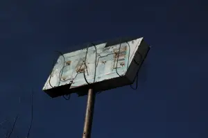 I have extensive and vivid memories of this town going back to the 1940s and 1950s before the interstate highway system. In those days, it was a major stop on the road east out of Denver. It was the last stop ("Last Chance") at which a traveler could make a pitstop, get gas, food, lodging, souvenirs, etc. It was a lively town in those days with motels and cafes all clustered together under bright neon lights. The road itself had pullover stops that were nothing but lumps of asphalt with picnic tables - no rest rooms or drinking fountains or anything. Last Chance - or what's left of it - is at the junction of routes 36 and 71 in northeastern Colorado. REMAINS: Not a lot remains. There's an old motel, what appears to have been a gas station, and a few abandoned homes. The cafes are gone but a couple of signs remain. |