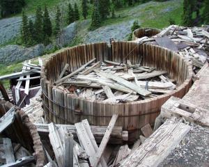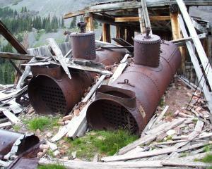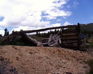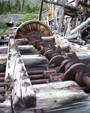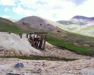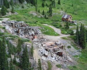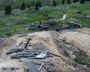 but very slowgoing in several strectches. REMAINS: 2 delapidated cabins and one mine at main site. Collapsed mine structure and nice 2-story house toward ouray from the main site. |