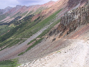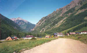 take road over Ophir pass to Ouray for fun. REMAINS: A few original buildings with some current cabins. |