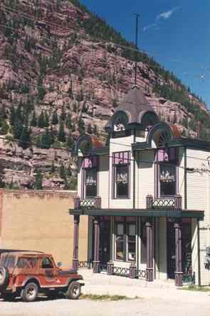 Ouray is one of those mining towns of long ago that refused to become a ghost town. Located on highway 550 north of Silverton, it was originally called Uncompahgre City because of the mountain ranges surrounding its locale. As was true with other mining towns in the area, it owed its existence to Utes Indian chief Ouray who stood between the whites and the Ute warriors. In his honor, the town name was changed to Ouray. For over 100 years, Ouray has been known as the "Switzerland of America." Founded in 1876, the town enjoyed a building boom in the 1880s and '90s and most of the buildings are still standing. The Ouray Hotel has, since 1893, been providing Victorian hospitality to travelers from all over the world. The town has a year round population of about 700. Submitted by Henry Chenoweth. ![]() Ouray Courtesy Dolores Steele ![]() Marker -- Sarah Ann & Sanford Courtesy Dolores Steele ![]() Ouray Courtesy Dolores Steele ![]() Died 1877 -- 7 mos. Courtesy Dolores Steele |