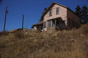 This house stands apart from the rest,. It's on Colo Road 84, above the Independence Mine, with the town of Victor to the south and Goldfield on the east