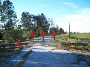 Approximately 6 houses remain. Located near the Palm Beach/Hendry County border off of route 80, along a portion of the original path of Hwy 27 (also called Corkscrew Rd). Road is blocked off just past the townsite. REMAINS: a few scattered houses and the original Bean City road (Old US 27) in rough shape UPDATE: Only rubble. Signs indicate that demolition began several months ago. Only a swampy area with broken foundations. |