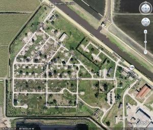 Located along US98 about a mile east of Canal Point. Very interesting to see all the streets laid out with stop signs and speed limit signs, but no houses or people anywhere. Google Earth has a good overview of the site, with about 50 spots where houses used to be. REMAINS: US Sugar Commissary, assorted street signs, closed factory buildings, possible foundations or other items out in the weeds |