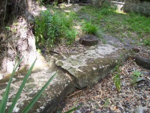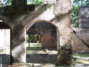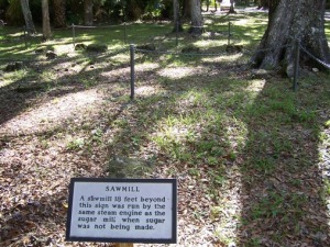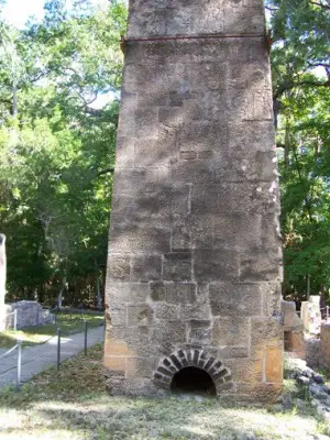 Plantation town. REMAINS: Sugar Mill's two story stone walls. Stones left from the mansion. A marker signifying the area of the forty slave cabins. Boat slips. Many Bulow liquor bottles are on display in the museum.. |