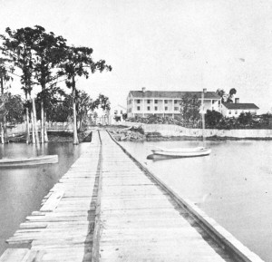 Enterprise has diminished in size to a small corner of Deltona. Once a thriving terminus of the steamboat line from Jacksonville, Enterprise was founded by Cornelius Taylor and other pioneers in 1841. Just across the lake from Fort Mellon, Enterprise boasted a grist mill, saawmill, church, school, and several stores. The town however really began to grow with the construction of the 2 1/2 story Brock Hotel and steamship landing. The hotel, central Florida's first hotel, could accommodate people in its 50 guest rooms. The sick and invalids would come to the Florida climate for their health and guests such as Grover Cleveland, Ulysses S. Grant, and William Jennings Bryant would come to vacation. Harriet Beecher Stowe was known to have written about Enterprise in her travel articles increasing the popularity of the destination. Brock built a courthouse when the town became the county seat of the then Mosquito County. By 1887 a board of trade was formed by the local businessmen who were disturbed by the deterioration of the town and by 1889 the larger growth of Deland took the county seat away. The freezes of the late 1890's damaged the large citrus groves and the railroad service extending all the way to Sanford made the steamship lines obsolete. As late as the 1980's Enterprise had a Post Office but now is gone as well as the Brock Hotel (site location is now the Methodist Children's Home) and it's former famous dock. The Enterprise Cemetery has been the subject of renovation with the graves of possible 100's of slaves being discovered in the thick brush surrounding the graveyard. An effort is underway to clean up the black section and mark the neglected locations. Submitted by: Mike Woodfin UPDATE: The old School house in Enterprise, slated for destruction by the Volusia county school board in 2005, has been rescued and moved to a new location one eight mile north at 360 Main Street. Owned by the Enterprise Preservation Society, Inc, a local non-profit organization, the school house will become a museum and heritage center opening in late 2009. Also, the description of the town on the web site is "a small corner of Deltona". This is technically incorrect, as the old downtown and most of Enterprise is still unincorporated Volusia county. More importantly, the citizens of enterprise incorporated the Enterprise Preservation Society (EPS) in 2000 in order to save Enterprise from being annexed out of existence by Deltona. We feel that Deltona did not have an interest in preserving the history and heritage of the town and that it is better served by this citizen's group than by Deltona's city commissioners, who have for many years shown more interest in development for its own sake than in preservation of our heritage and quality of life. EPS has succeeded in having Enterprise designated as a "community of special interest" by the county, and the county is in the final stages of developing the Enterprise Local Plan, designed to protect the rural character of the community. They are also planning on designating the old downtown area as a historic district, providing further protection of historic buildings and sites. Ed Sullivan |